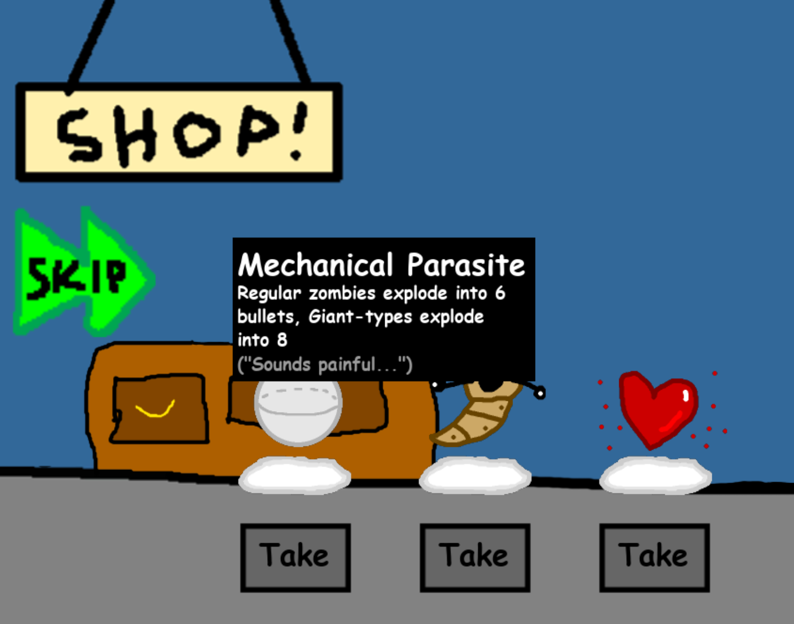 Too Many Guns is a wave-based shooter roguelike. Aim your mouse at the zombies and get to shooting! With a variety of weapons, items, and abilities, exploration and experimentation are encouraged.